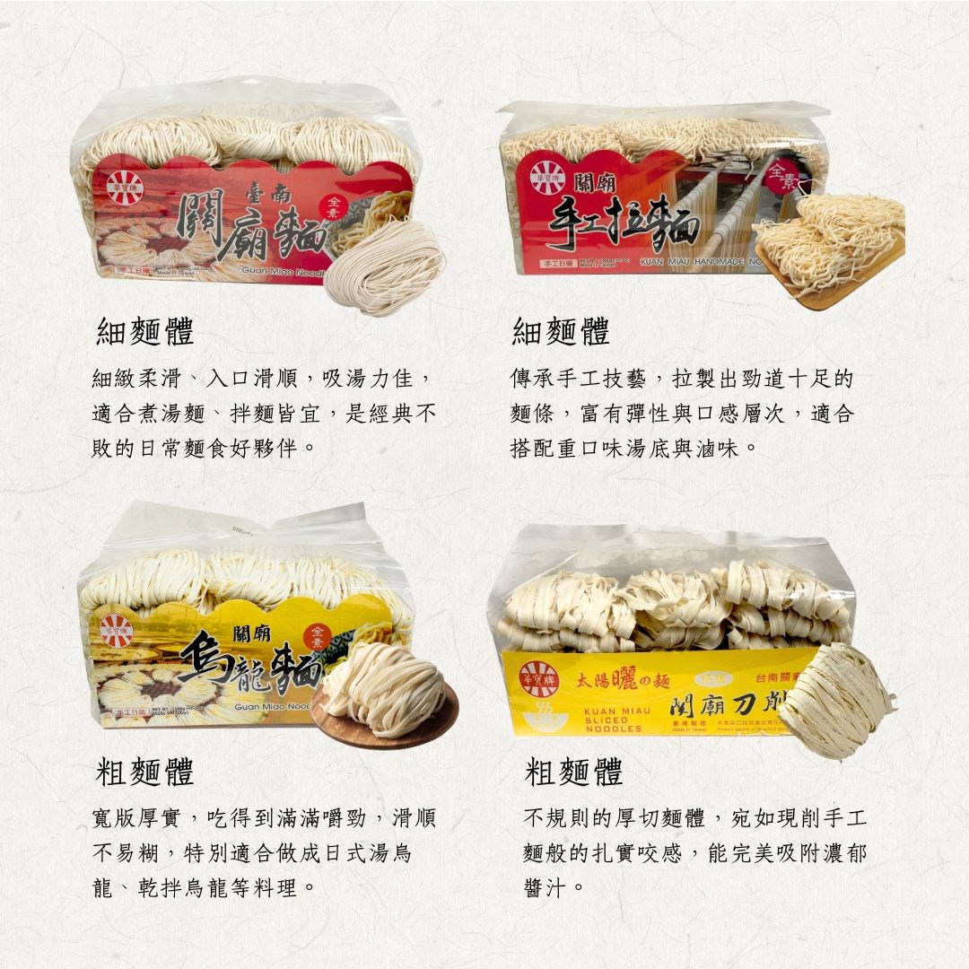 來自台南的關廟麵,傳承古法手工日曬製作,堅持不添加任何添加劑與防腐劑,麵條香Q滑順、久煮不爛。